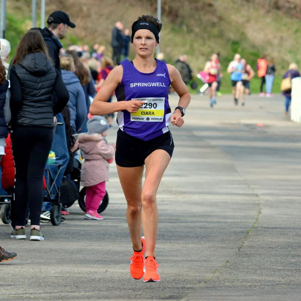 Ciara Toner setting a new club record at the Larne Half Marathon